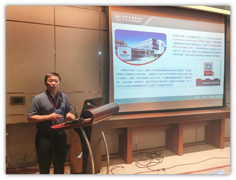 在精彩的主会场报告后,大会还设置了消化道肿瘤分会场、肺癌分会场、乳腺肿瘤分会场及精准医疗分会场。求臻医学积极参与了精准医疗分会场内容,邀请来自河南省肿瘤医院分子病理科主任马杰主任就二代测序指导下的肿瘤分子标志物做了精彩演讲。马杰教授从肿瘤的发生机制、肿瘤的特征讲起,从二代测序角度分别就肿瘤的驱动基因、抑癌基因、免疫治疗疗效预测、肿瘤的遗传易感性等方向介绍了好的肿瘤检测产品应当具备的基本要素。马杰教授的讲座深入浅出、亮点不断,参会专家普遍表示内容贴近指导临床实践,介绍的产品具有非常显著的特色、前沿性及专业性,期待与求臻医学能有进一步了解及合作。