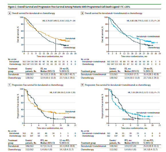 Durvalumab With or Without Tremelimumab和Standard Chemotherapy in First-line Treatment of Metastatic Non–Small Cell Lung Cancer: The MYSTIC Phase 3 Randomized Clinical Trial. JAMA Oncol. 2020