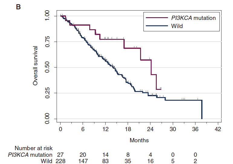 PIK3CA突变状态,mTNBC的OS