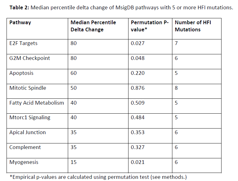 表1.5个或5个以上HFI突变MsigDB通路的中位百分位delta变化