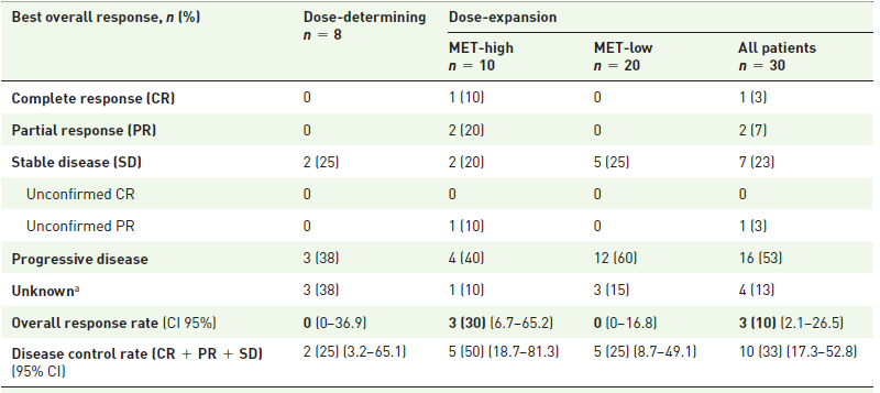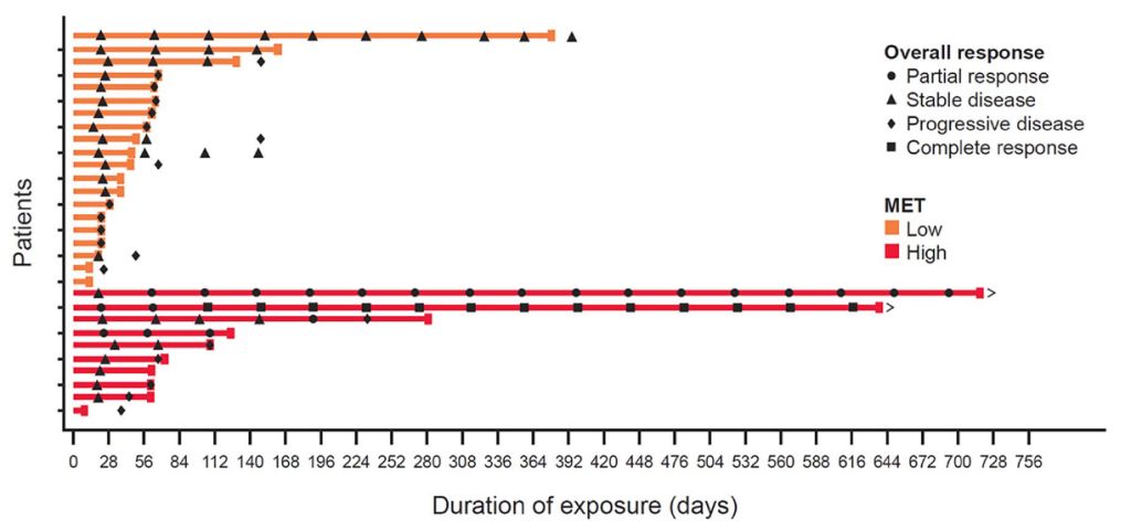表2.根据研究阶段和MET状态,最佳的总的治疗反应