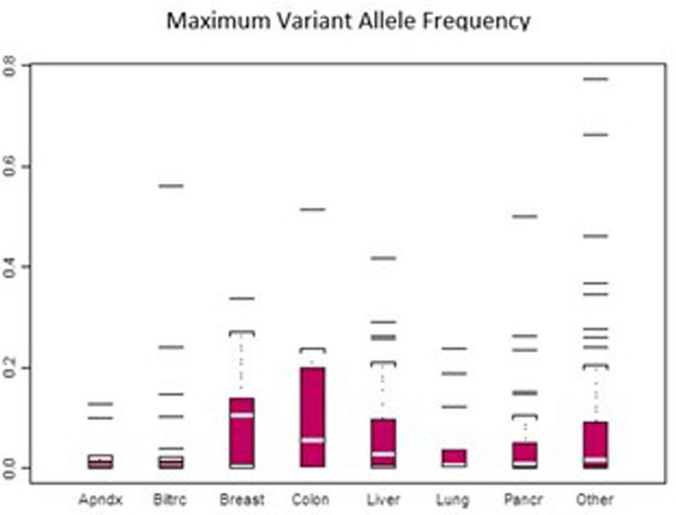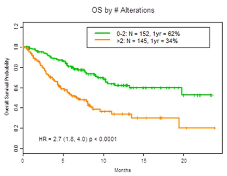 本研究招募了来自MD Anderson癌症中心的298名转移性/局部不可手术的进展期肿瘤患者,这部分患者接受cfDNA基因检测,并积极接受后续治疗,并分析了cfDNA VAF与OS的关系。