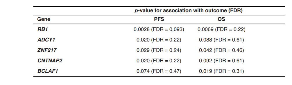 图2,存在细胞周期相关基因突变的小细胞肺癌患者PFS及OS
