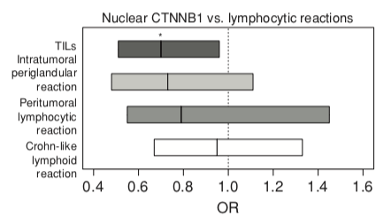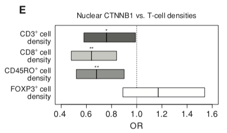 图4: 根据核CTNNB1对T淋巴细胞浸润进行IHC分析