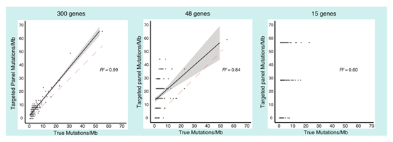 目前研究表明,gene panel至少覆盖0.8M的区域,所得TMB与外显子分析才具有较好的相关性。